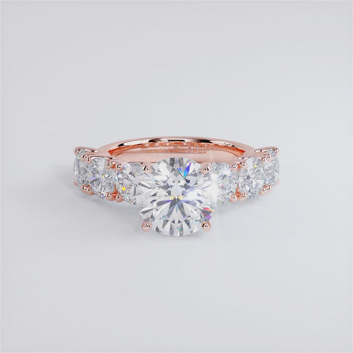 This unique setting is made of 2.70ctw F color & VS clarity set in 14k rose gold.