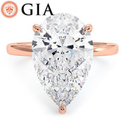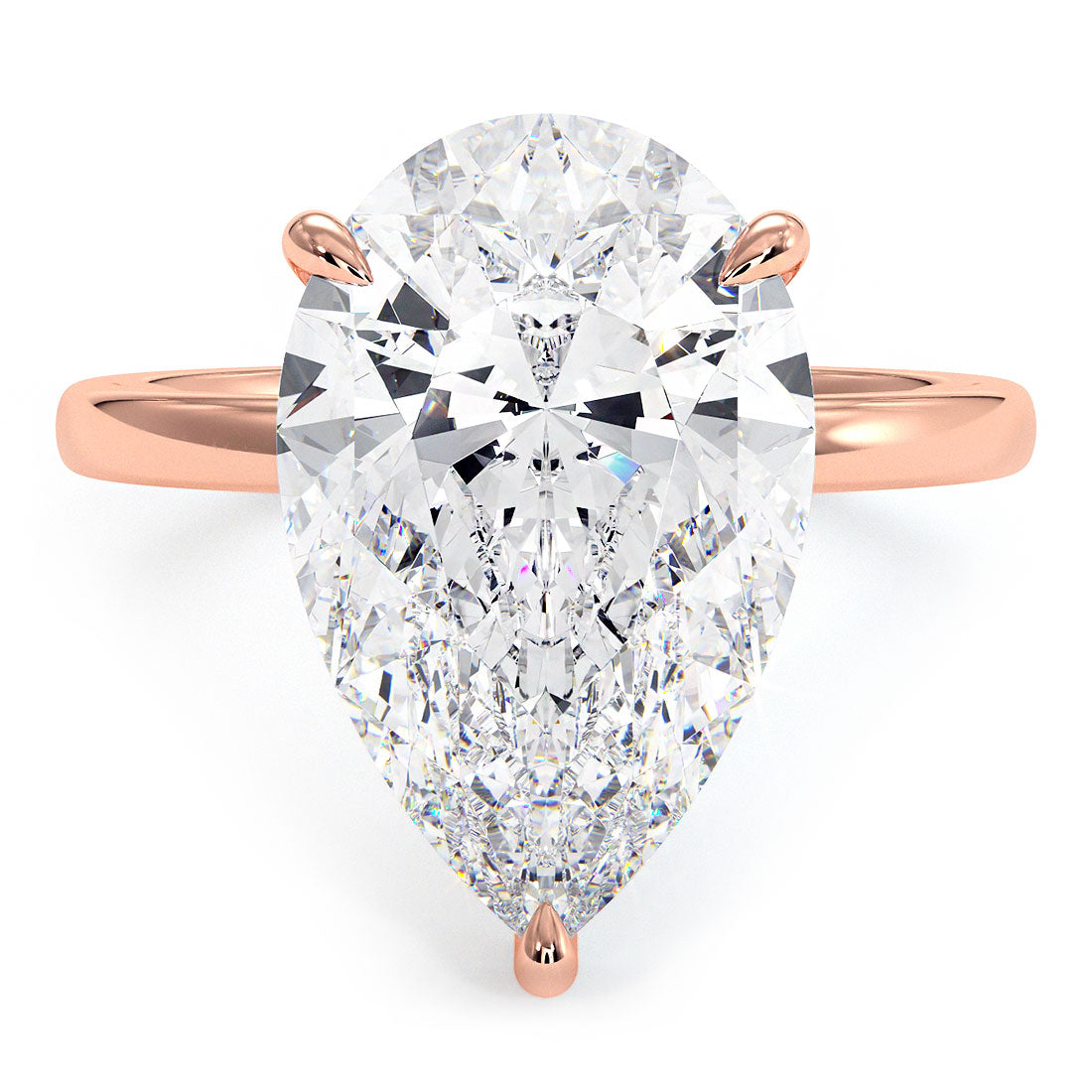 A classic petite wire basket diamond solitaire engagement ring set with 5 Carat Pear Shape Lab Grown Diamond.