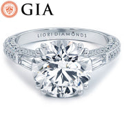 5 Carat Round Brilliant & Tapered Baguette Three Stone Micropavé