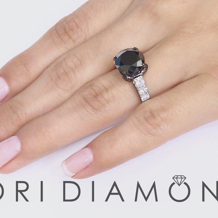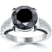 6.05 Carat Certified Natural Black Diamond Engagement Ring 14k White Gold