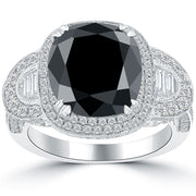 6.08 Carat Cushion Cut Natural Black Diamond Engagement Ring 14k Vintage Style