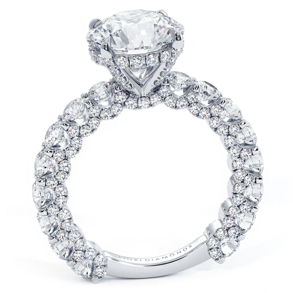 6.25ctw Round Brilliant Micropavé U Shape Setting Lab Grown Diamond Engagement Ring 14k White Gold