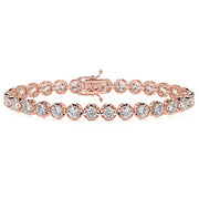 This single row buttercup prong set round brilliant cut diamond eternity bracelet is set with F color & VS1 clarity diamonds, every diamond is set beautifully and carefully in a 4 prong setting, the double securing clasp allows for worry and stress free wear. This diamond tennis bracelet is made in 14k Rose Gold.