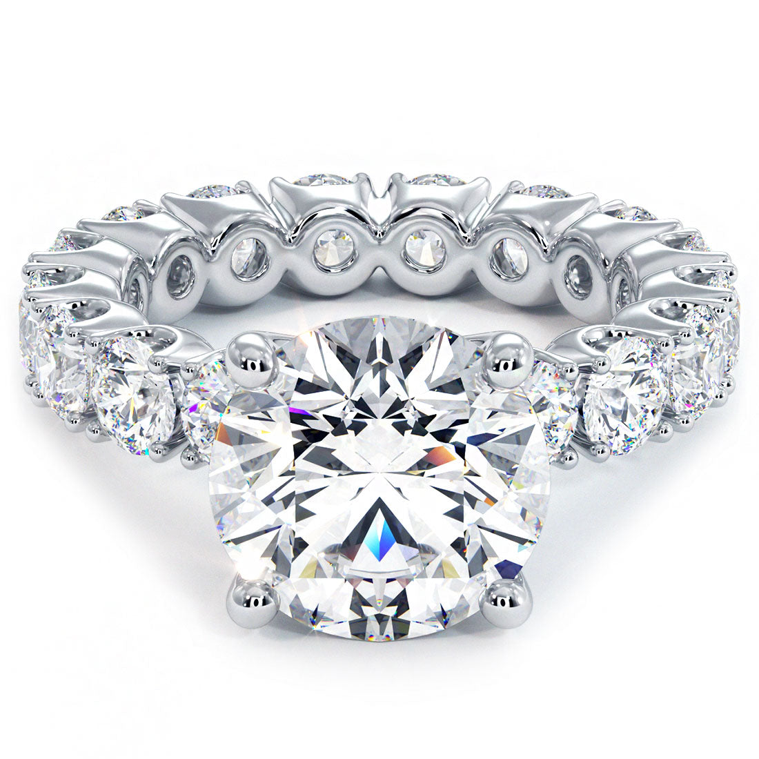 6.88 Carat H-VS2 Round Diamond Engagement Eternity Ring 14k White Gold