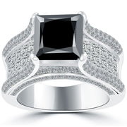 6.89 Carat Princess Cut Natural Black Diamond Engagement Ring 18k White Gold