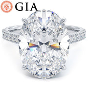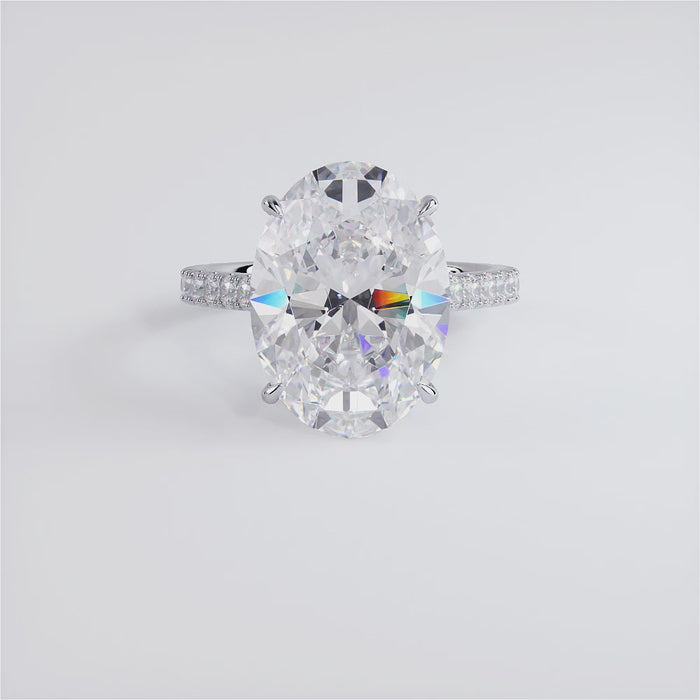 A petite micropavé diamond engagement ring set with 6 Carat Oval Cut Lab Grown Diamond.