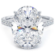 A petite micropavé diamond engagement ring set with 6.00ct dew Oval Cut VVS & Colorless (D-E-F) Moissanite.