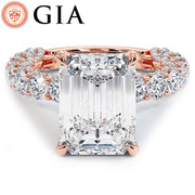 7.52ctw GIA Certified F-VVS2 Emerald Cut Micropavé Lucida Setting Lab Grown Diamond Engagement Ring set in 14k Rose Gold