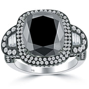7.88 Ctw Cushion Cut Black Diamond Engagement Ring 14k Black Gold Vintage Style