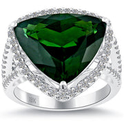 This luxurious cocktail fashion ring is set with an absolutely stunning 7.42 ctw natural tourmaline center stone. 0.53 ctw of F-VS white round brilliant diamonds are set around the green center stone and along the split shank band in a micro pave setting. This beautiful cocktail ladies ring is made in 18k white gold.