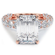 8.29ctw E-VVS2 Emerald Cut Micropavé Lucida Setting Lab Grown Diamond Engagement Ring set in 14k Rose Gold