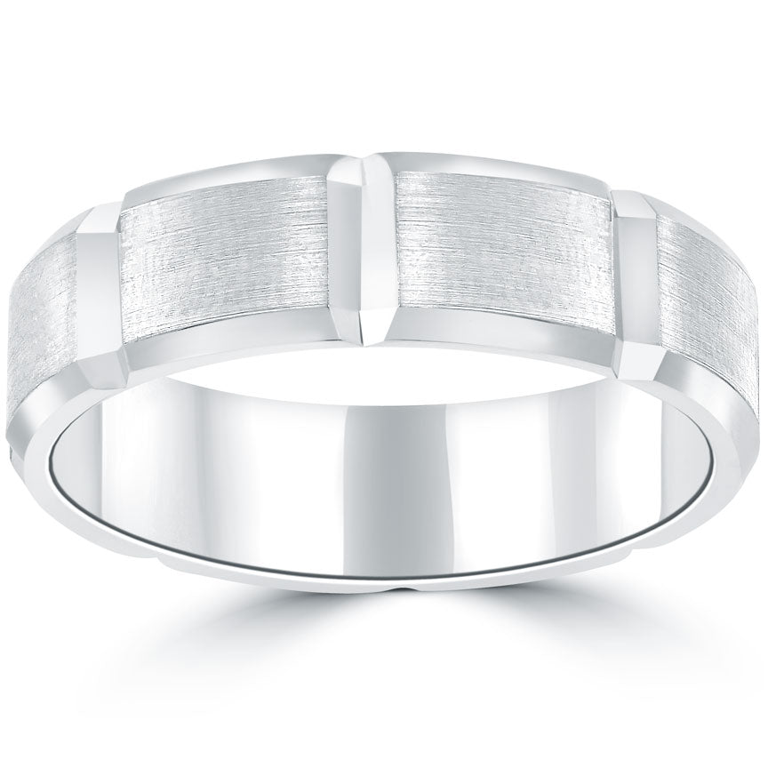 Swiss-Cut Matte Finish Wedding Band Ring 14k White Gold Comfort Fit (6.15 mm)